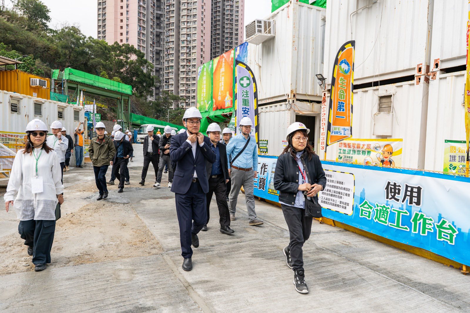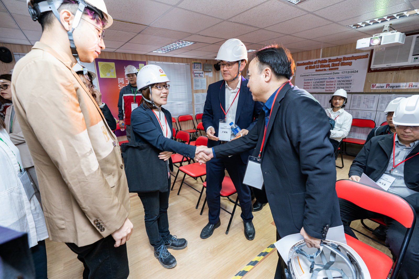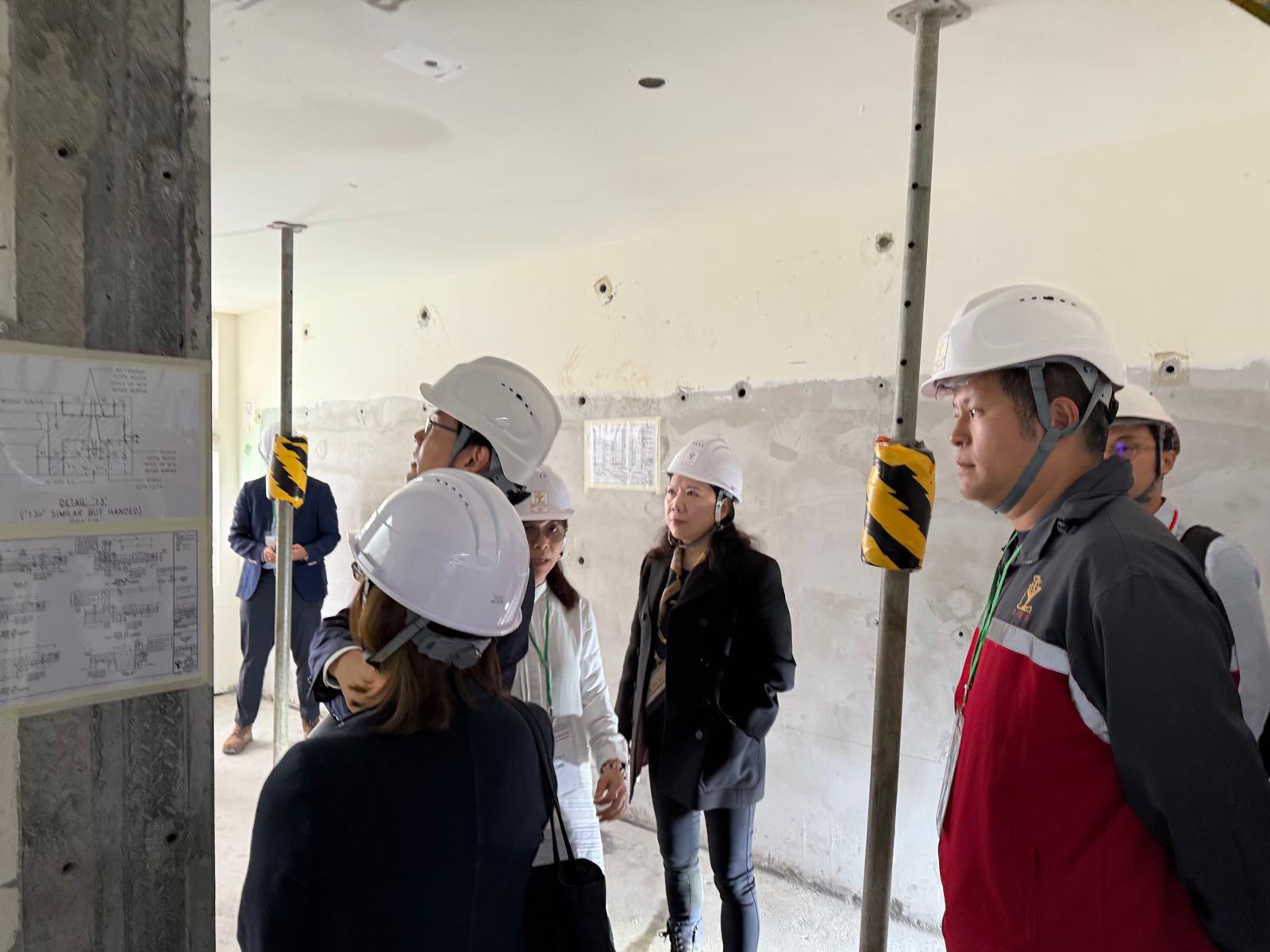 廣州市工程勘察設計行業協會今(17/3)赴港考察,由會長胡世強先生率領由多家廣州知名設計院、建築產業化研究機構及數位化設計企業組成的13位專家考察團,到訪由有利建築承建的葵涌石梨街公營房屋發展計劃工地,並與房屋署總建築師(一)Ellen會面,了解MiC 1.0公共房屋項目。有利集團的Rosana及其團隊亦出席支持。